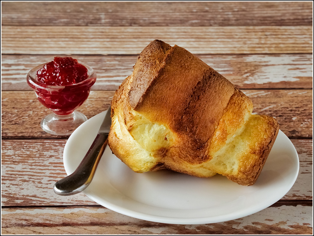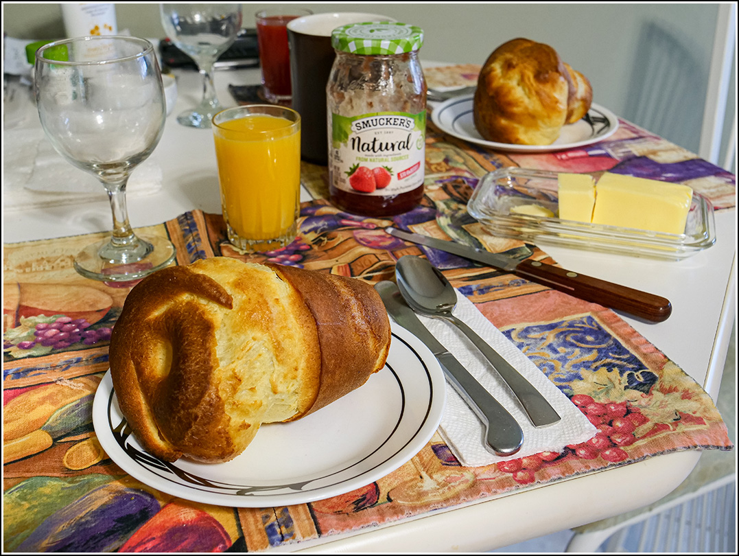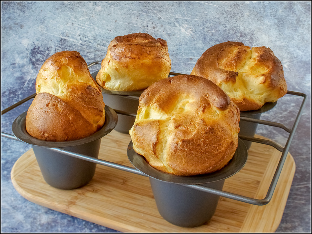 We use a hand mixer and blend the ingredients in a 4-cup measuring cup rather than using a food processor or blender. It works just as well and makes for easier filling of the popover cups! Room temperature ingredients work best. Leave eggs and milk out of refrigerator for several hours before beginning to make the popovers.